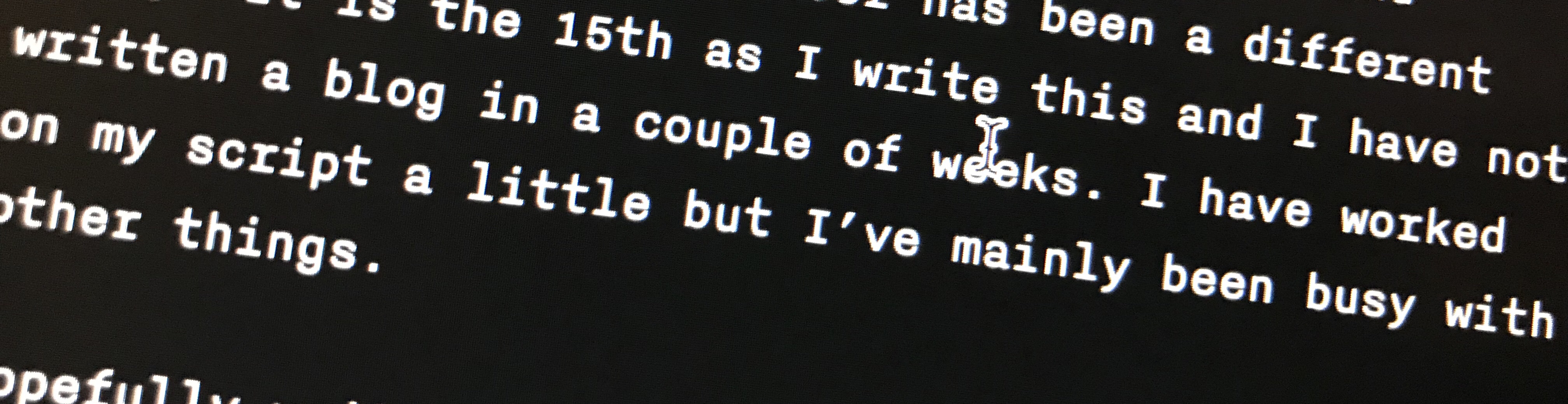 I was blogging about my writing adventures in November and I will definitely continue to do so but I intend to mix back in blogs about photography, video editing and other filmmaking related topics.